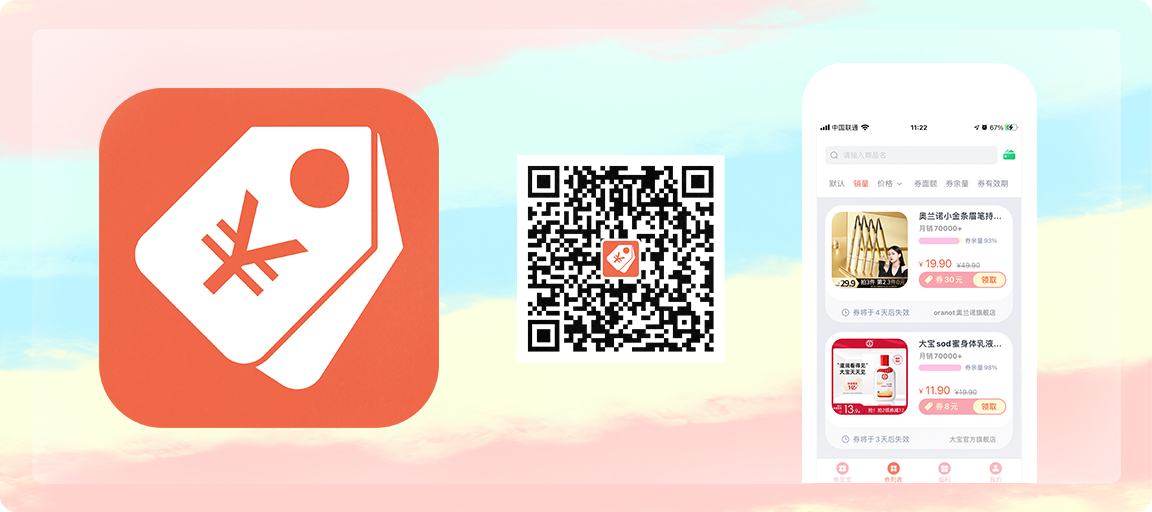 券宝宝对海量优惠券分类排序,为用户筛选出大面额、销量高、即将被领取完或即将到期的券及券后特价商品。同时在优惠券详情页展示出每张券的面额、领取量、有效期、销量、券后价等关键信息,多角度展示券信息,让用户更省心更省钱。